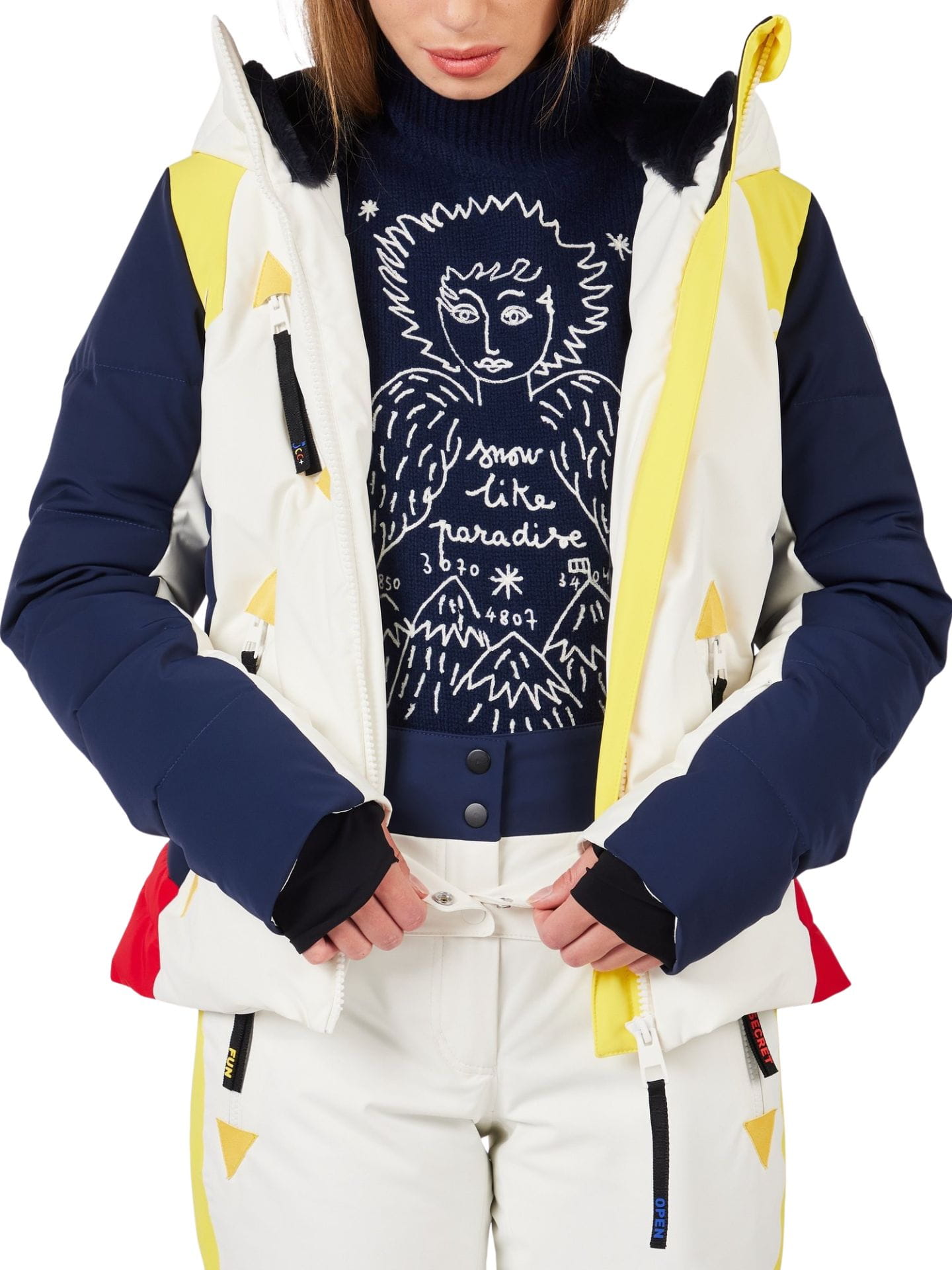 Pozwól, by Twój styl wzbił się ponad stok – Rossignol JCC Valdiz Down Ski Jacket to damska kurtka narciarska, która łączy kultowe, anielskie motywy autorstwa francuskiego projektanta Jean-Charles de Castelbajac z najwyższą funkcjonalnością. Wodoodporna membrana 20 000/20 000 oraz naturalne wypełnienie z puchu kaczego Duvet du Faubourg® zapewniają niezrównane ciepło i ochronę nawet podczas intensywnych opadów śniegu. Czterokierunkowy stretch gwarantuje pełną swobodę ruchów, a liczne kieszenie pozwalają wygodnie przechowywać skipass, telefon i inne niezbędne akcesoria.