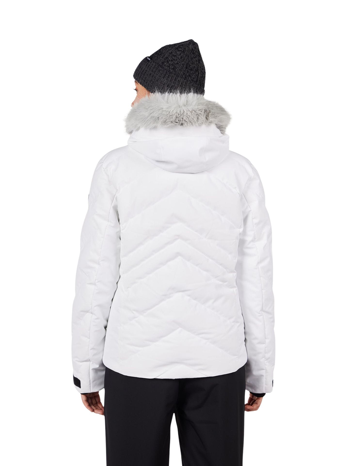 Odpinany kaptur z odpinanym sztucznym futrem, zintegrowany pas śnieżny, elastyczne mankiety z otworami na kciuk, liczne kieszenie (na dłonie, skipass, wewnętrzne) oraz wodoodporne zamki YKK gwarantują wygodę i funkcjonalność.