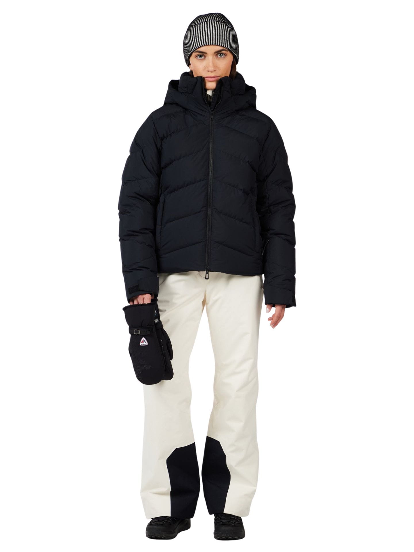Kurtka została zaprojektowana z myślą o narciarkach, które oczekują luksusowego ciepła, klasycznego kroju i praktycznych detali. Ocieplenie z certyfikowanego puchu (Responsible Down Standard) gwarantuje odpowiedzialne pozyskanie surowca, a przemyślane rozwiązania – takie jak zintegrowany pas śnieżny, mankiety z otworami na kciuk, liczne kieszenie i stały kaptur – podnoszą komfort użytkowania przez cały dzień na stoku.